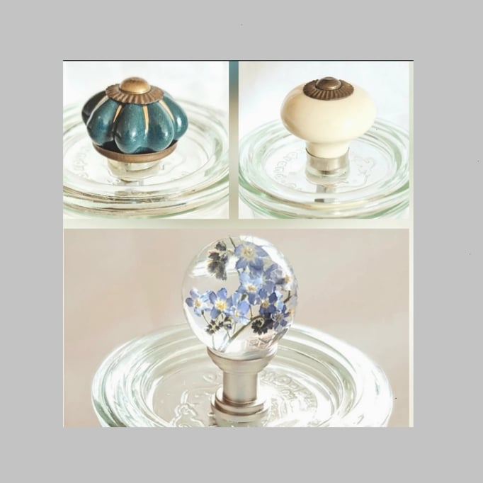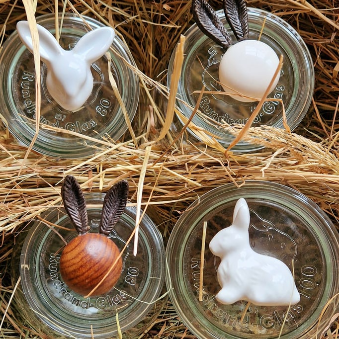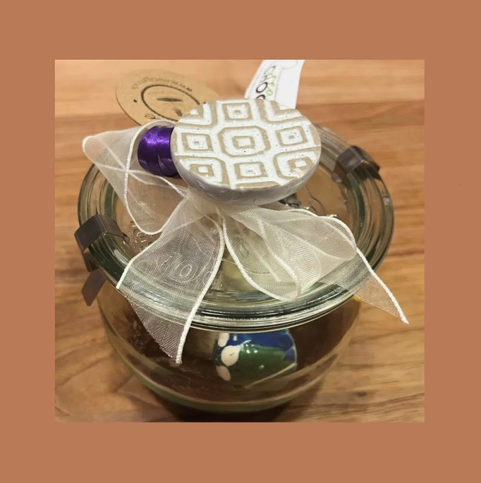 Zusätzlich im Angebot sind Weckgläser mit verschiedenen Möbelknöpfen, Schleichfiguren und sonstigen kreativen Griffen – gefüllt mit Pralinen, Süssigkeiten oder Tee - ein tolles Geschenk oder Mitbringsel.