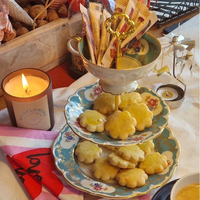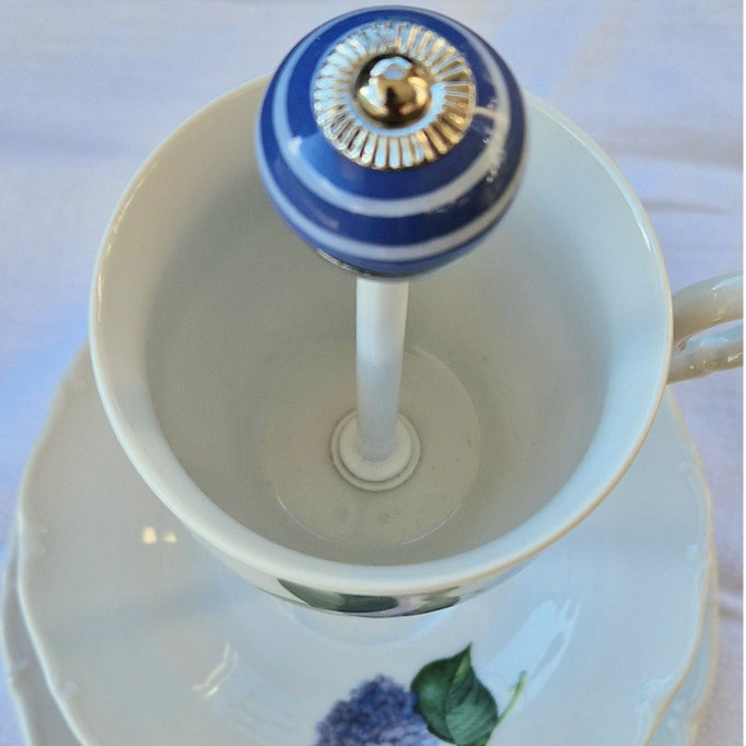 Selbstgemachte Étagèren mit tollen Porzellan-Tellern. Ein schönes platzsparendes Tischelement in vielen Formen, Farben und Grössen mit Zierstangen und Möbelknöpfen.